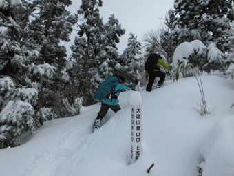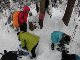 優しい岩城君は、破損した「山ノ神」のスノーシュー を履き、自分の物を「山ノ神」に貸してくれた。 |