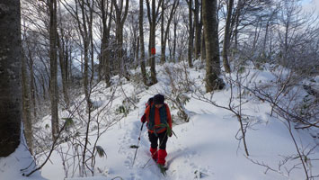 ⑥周辺のブナ林を行く。 |