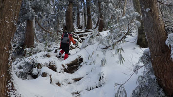 もちろん主宰される谷口さんもおられたが、恐れ多くて、ずっと後から少し離れて行った感じとなった。今日もカンジキとスノーシューを用意したが、使わぬ感じを察しカンジキを担いだ。しかし、使用せず最後までツボ足となった。積雪は40cmくらいだったろうか?