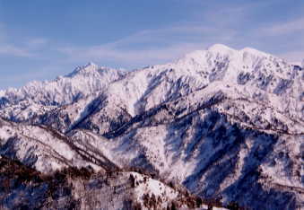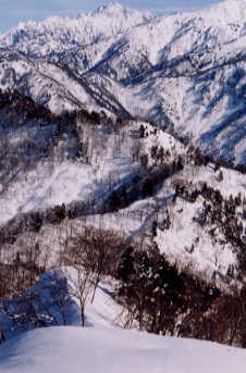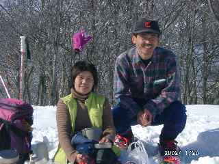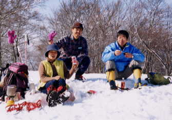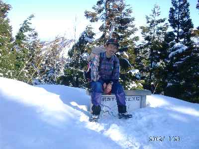 今日の一番緊張する所だったかもしれない。カンジキよりも、アイゼンやピッケルがあった方がいいくらいで、「山ノ神」がびびってしまう。大声を出して、指揮するが、へっぴり腰である。これでは、帰りが思いやられる気がした。カンジキ装着から20分余りで、ようやく大辻山に到着し、思わず「ワーッ」と、第一声を発してしまった。
