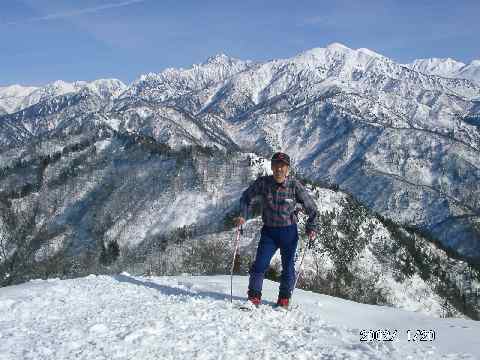 この大辻山頂には、我々を追い越していった富山の男性一人が、我々より先に、今まで見た事のないような大展望を楽しんでいたのだ。長靴と小さなザックの身軽なスタイルの岩田氏は、登山歴が浅いと謙遜していたが、なかなかの健脚で、国立少年の家から2時間半余りで、山頂に着いたと語っていた。