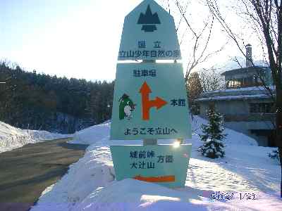 | 大辻林道入口 | 立山国立少年の家前の案内板 | 城前峠への林道は圧雪状態 | 長倉峠で |