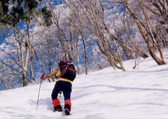 | 雪の壁を登る |