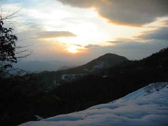 黄昏の来拝山に日が落ちようとしていた