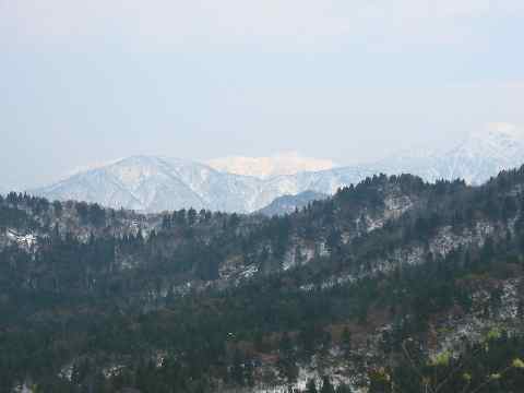 林道からの薬師岳(白く見える奥の山)