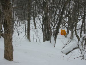 走るように下らなくても、それなりに下れば、5~10分の誤差が生じようが、「山ノ神」の待機場所に着くのである。上から黄色のツエルトを確認した時に、「おーい」と声をかけて、返事が聞こえた時には、ビールを片手に冷たく雪の中に埋まっていなくて良かったと思った。