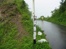 小降りであるが始めから雨の中へ突入である。雨であるから、ゆっくり食事をする事もないであろうと、炊事用具を外し、私だけがリックを担ぎ、「山ノ神」はストックだけの身軽さで出発した。
