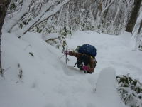 ずーっと雪は降り続いていたが、登り納めの山として、「大辻山」は最高であった。もう一降りすれば、根も岩も完全に雪の下になるであろう。積雪は40~70cmといったところか!