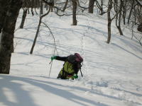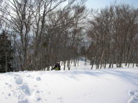 「国少の家」を出発したのが午前11時を少し回っていた。ともあれ長尾峠を目指した。幸い林道は圧雪状態であったため、1時間半余で長尾峠に着く事が出来た。標識も何も見えない⑨の登山口を出発したのが午後1時頃で、行ける所までの気持ちであった。