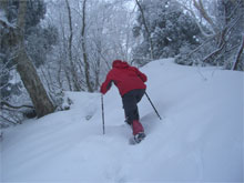 前日のトレースも、新たな降雪で、消されてしまっていたが、壺足でも問題なく歩く事が出来、荷なしの「山ノ神」は、意外と快調であった。荷を担いだ私の方が、足取りが悪るかったかもしれない。⑥から私は、荷の重さに耐えきれず、スノーシューを履いたが、「山ノ神」は、終始壺足で通した。