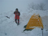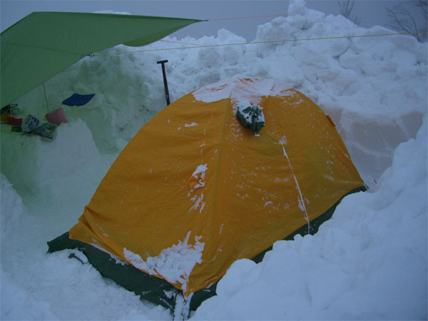 薄明るくなって、外に出れば視界が悪く、小雪が舞っていた。お湯を沸かし、食事の準備をしても、元々、何事にも俊敏さを欠く「山ノ神」は、なかなか、テントから出て来なかった。