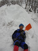 その先は、益々、その繰り返しになると予想され、撤退を決めたが、通過して来た所を、今度は、「登れない。」 という。仕方がないので、シャベルを出し、階段を造らされる羽目になった。