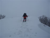 広い尾根は、ガスが掛かると分かり難い。 |