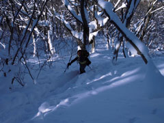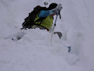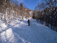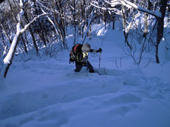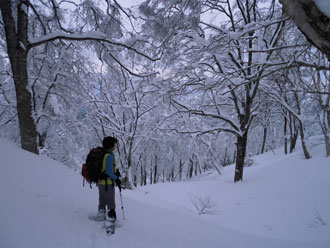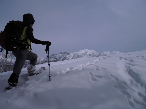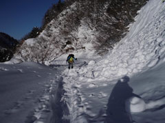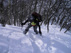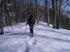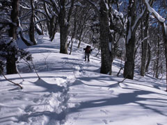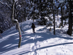 1/7 城前峠まで圧雪、そして、奥長尾山までのトレースに助けられ、「大辻山頂まで届くのか?」 との心配が吹っ飛んだ形であった。でも、その先の雪が重たく、ラッセルが意外と捗らなかった。