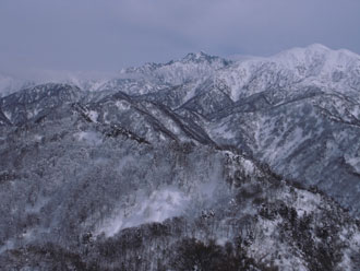 「さて、剱岳は?」 剱岳だけでなく、大日岳も立山も、毛勝の山々も望めたのでしたが、あの青空が無くなり、ボヤッとした感じになってしまっていたのです。シェルターで食事をしている内にガスが出て来て、仕舞いには、全てを隠してしまいました。「もっと、速く歩かなければ・・」 が口からでそうであったが、思わず堪えたほどでした。