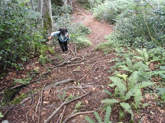 「山ノ神」の思いは、ぬかるみの少ない尾根、比較的歩き易いであったハズが、足取りが悪く、ペースが上がらなかった。アルペン村のコンビニで、「あまり食欲がない。アイスクリームを買ってくれ!」 と帰りでなく、可笑しな事を言うとは思っていたが・・・・