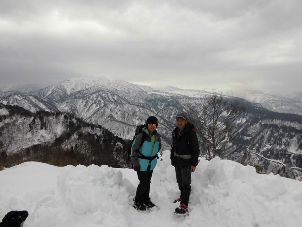 1週間前は、「山ノ神」の故障で、山頂に届かず苦汁なめたが、今回は、お正月三が日のものと思える、しっかりしたトレースのお陰?で、壺足で山頂まで行けたのであるから、少雪を此処でも感じてしまった。スノーシューとカンジキの選択を迫られたが、担ぐ事を思えばと、カンジキとした事は正解のようであった。