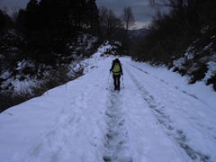 城前峠に向かって林道歩き。 |