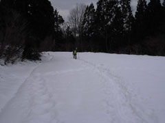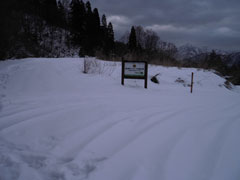 | 城前峠の標識辺りは雪が無い。 |