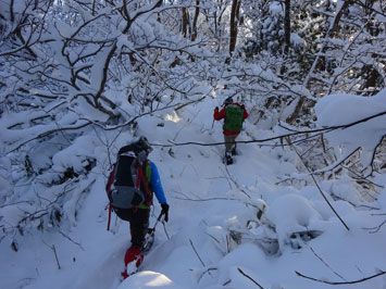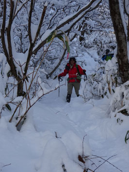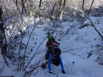 | 定番になってしまったコ-ヒータイム。 | 小枝を払い除けながら・・・ |