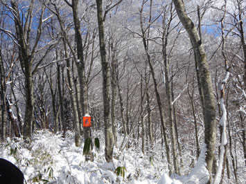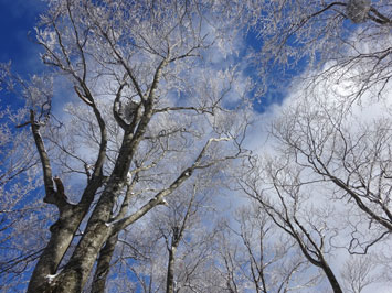 | 青空に樹氷がキレイでした。 | 山頂までもう少しです。 |