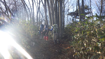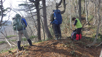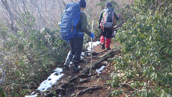 私達(北ちゃん・マキちゃん・山ノ神と私)も、今回このルートを利用させてもらった。昨夜来の雨で、ヌルッとする所もあったけれど、全般的には整備された気持ちの良い登山道であったように思う。全員が、このルートは1~2回しか経験がなく、大鷲山の概念は、積雪期に海を眺めながら登る山だという認識であった。