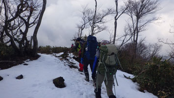 12/23 私としては今年最後の山行であった。怪しい予報でも行くと言ってくれた仲間と大鷲山を目指した。大鷲山は駐車に苦慮するが、今回は、海岸の堤防付近の停め、正しく0mからのスタートなった。通常は積雪期・残雪期の大平からのルートが主であるが、最近は国道8号線からのルートが整備され、ガイドブックにも掲載される様になってからは、通年登られるようになっている。