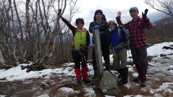 車デボ(海岸)7:45=登山口7:50=林道(9:30~40)=積雪期ルートとの合流点(10:05~15)=大田さんと遭遇(10:35~45)=大鷲山頂上(10:55~11:05)=食事処(11:10~12:25)=林道13:20=別の登山口14:30=国道8号14:40=車デボ地点15:50