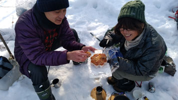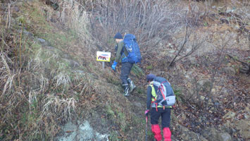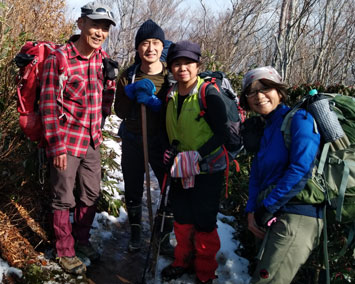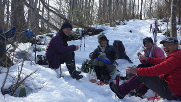 | 積雪期ルートとの合流点で休息。 |