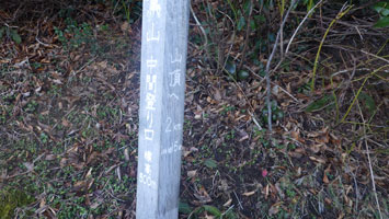 山頂まで2キロ、1時間15分の標柱。 |