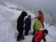 懸命の設営作業。背丈ほど掘ったが、幅を広げすぎたかもしれない。