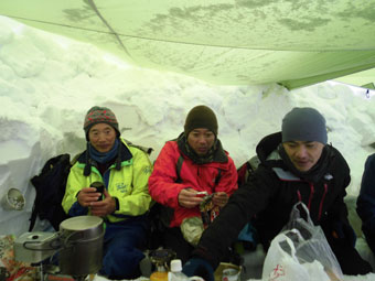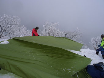 大小2枚のタープを張ったが、場所によっては、風が吹き込み寒かったようである。