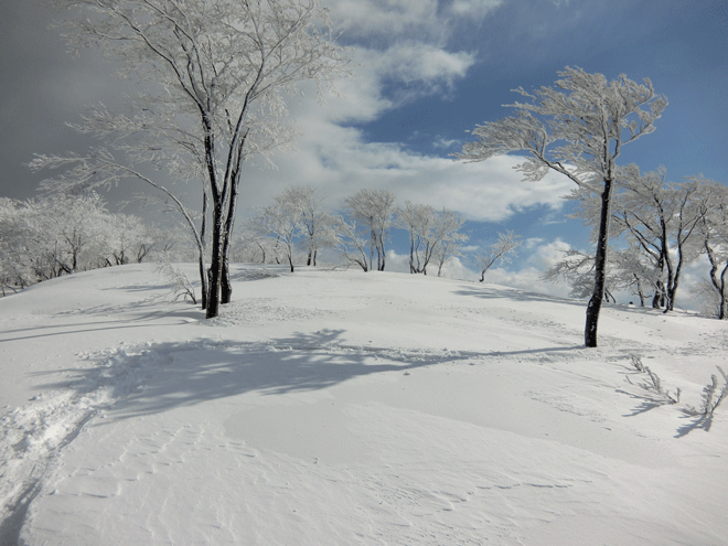 そして、太くはないが、ブナ・クヌギなどの樹木に着く樹氷が、まるで桜のような感じで思えたのは私だけではあるまい。