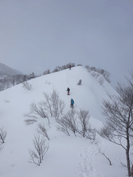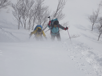 時折、風雪が強くなった。 |
