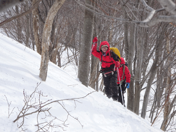 久しぶりの山行だという絹子さんが頑張る。