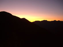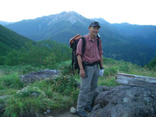 | 午前5時出発! | スゴ乗越は30分降った所にある | 赤牛岳をバックにスゴ乗越で・・・ |