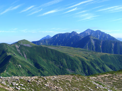 | 中央奥 槍ヶ岳 | 中央奥 笠ヶ岳 ・ 右奥 黒部五郎岳 |