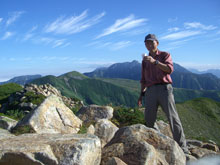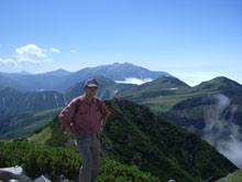 | 越中沢岳から赤牛岳を望む | 五色ヶ原方面をバックに・・・ | 薬師岳方面をバックに・・・ |