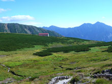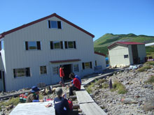 | 五色ヶ原山荘の右は 針ノ木岳 | 五色ヶ原山荘でお水を頂く | これからザラ峠へ・・・ |