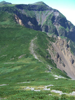 | 鳶山を過ぎると五色ヶ原が間近になる |