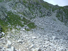 | ガラ場を行く | 鬼岳東面 | ガスが出だしてから疲れも出てきた! |