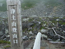 | 浄土山頂にはロープが張ってあった | 室堂山展望台付近の標柱 | 室堂ターミナルが見えてホッとした |