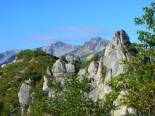 | スゴノ頭から山並みを眺める | 越中沢岳への登り | 岩間から薬師岳を望む |
