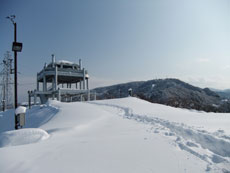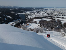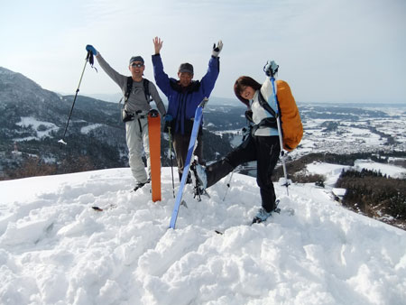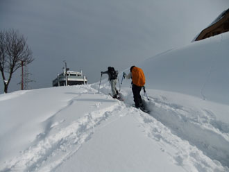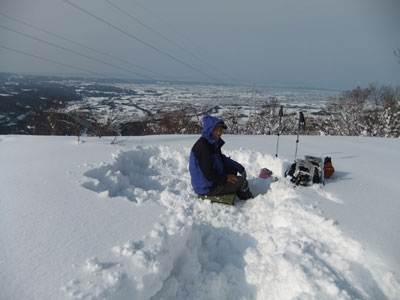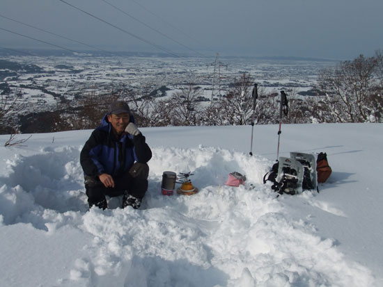 | 午後2時過ぎ、山スキーヤーがやって来た。お互いビックリ! 「やっぱり 好山病だね!」 とお互い茶化し合った。 |