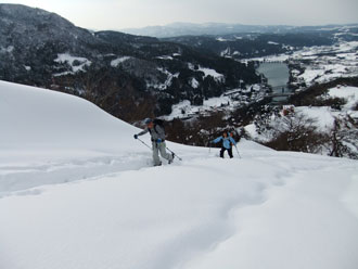 | カンジキのペアをすぐに抜き去ったが、 ちょっと気になり上部から一枚パチリ。 でも、殆ど話す事はなかった。人それぞれ・・ |