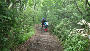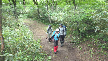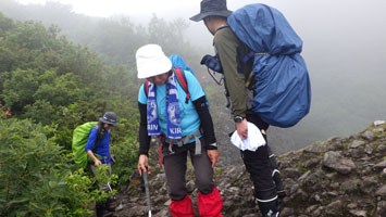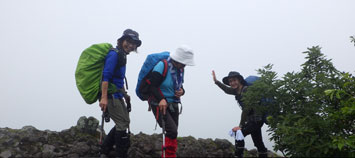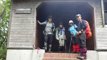 懸念された雨が降らず、ピッチを上げたら汗びっしょりになった。御前山に着いた頃、忙しい泰三氏に仕事が入り退場となる。結局、予想された4名になる。午前10時頃、小佐波御前小屋に着いたが、朝食の取っていない者にしたら、ちょうどよい昼食となる。