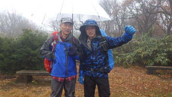 誰も来ないだろうと思っていた所へ、好山病重症患者の「北ちゃん」が、やって来てくれた。雨である。こんなところにと思うが、「どうしようか思っていたところに、その記述を見たから・・」 と、「北ちゃん」は言うが、私以上にバカモノなのかもしれない。「雨でも山に来れるなんて・・」 とか、「歩けるという幸せ・・」 などと、かなり悟った会話が続いた。その間、もしかしたら、「ひょっこり、マキちゃんが来るのでは・・」 と願望とも取れる会話にもなった。