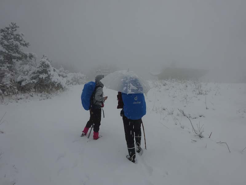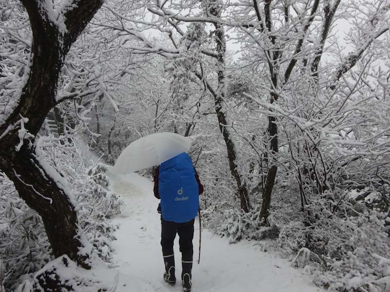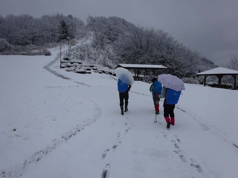 | 初登場のさかなさんです。 | 御前山に寄りましたが、降り頻っています。 |