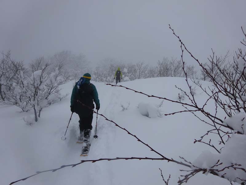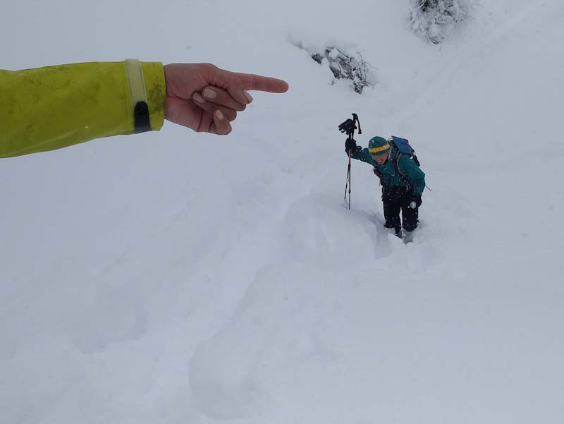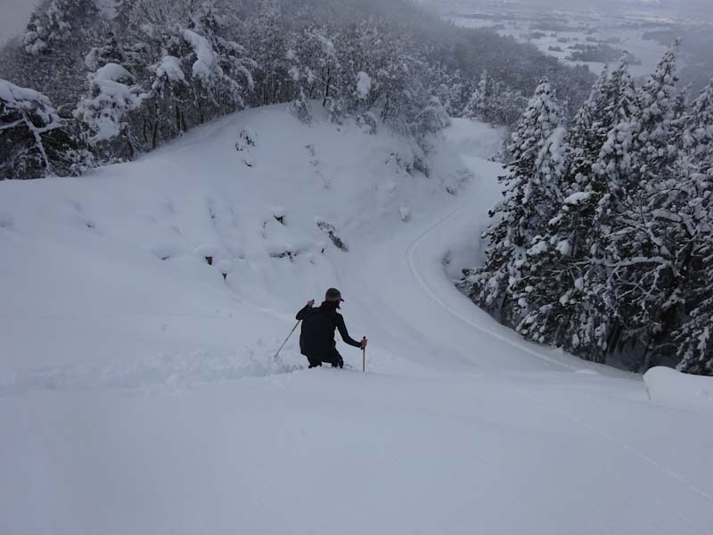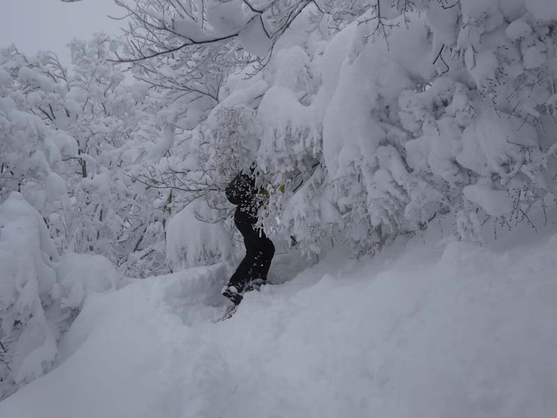 河井君急斜面に取り付く。 |