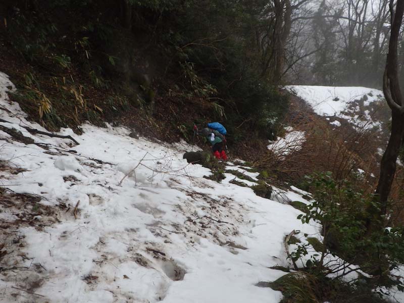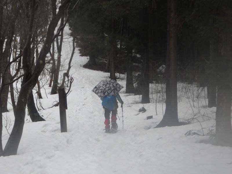 それでも、若い方の団体さんの中には、前回お会いした方があり、一言お喋りをしましたが。 あっそうそう、熟年女性にもHPを見ておりますとお声を掛けてもらいましたけど。それ以外は、ずっと、雨やミゾレの中を耐え忍んで歩きました。(喜んでと見えるかもしれませんが)